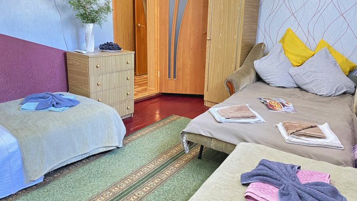 Размер номера 27 м². Услуги и удобства в номере: • 2 комнаты • 3 односпальные кровати и 1 двуспальная кровать • Мини-кухня• Холодильник• Вентилятор• Электрический чайник • Кухонные принадлежности • Полотенца• Белье• Обеденный стол• 1 этаж• WI-FI • Парковка• Звукоизоляция