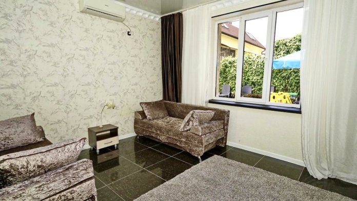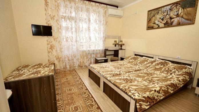 Подходит как для отдыхающих, так и для деловых гостей. Здесь созданы все условия для комфортного проживания. Все номера оснащены необходимой техникой и мебелью: кондиционер, холодильник, телевизор. Двор гостевого дома ухожен и оборудован местами для отдыха. Во дворе есть столы с навесами и оборудованные летние кухни. Зона барбекю находится на соседней территории нашего гостевого дома, в 3х минутах ходьбы. А в непогоду или просто когда лень идти на море, у нас есть теплый бассейн, оборудованный детской горкой и шезлонгами по периметру. На территории предусмотрены душевые кабины. Пока взрослые плавают в бассейне, дети весело проводят время на закрытой территории дома.
