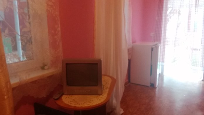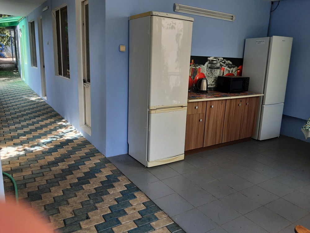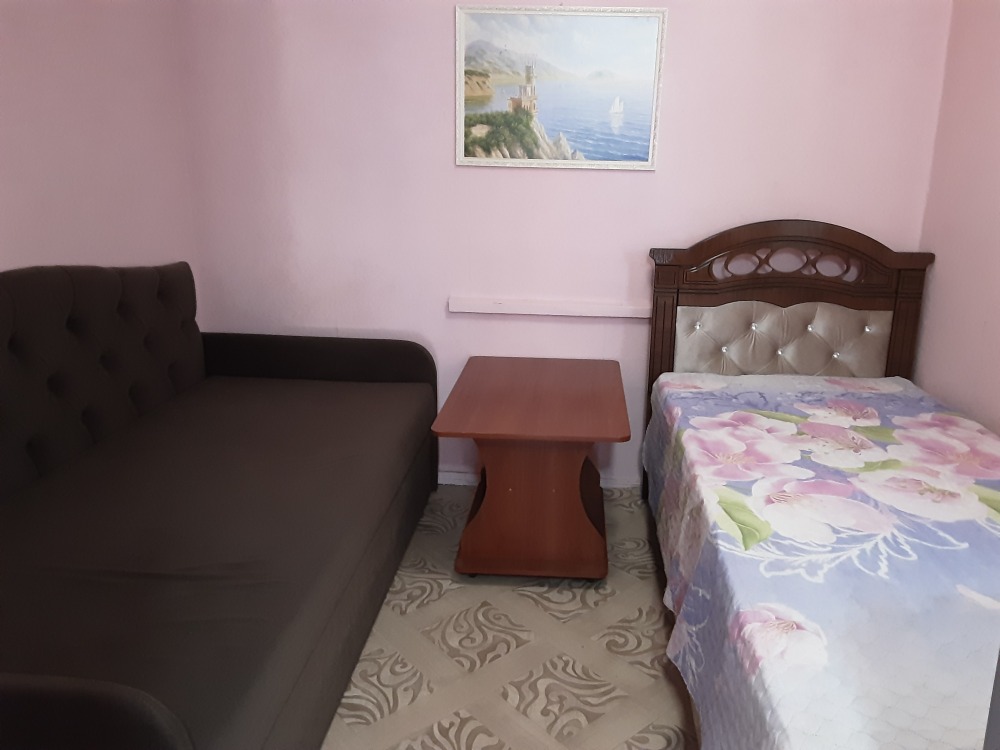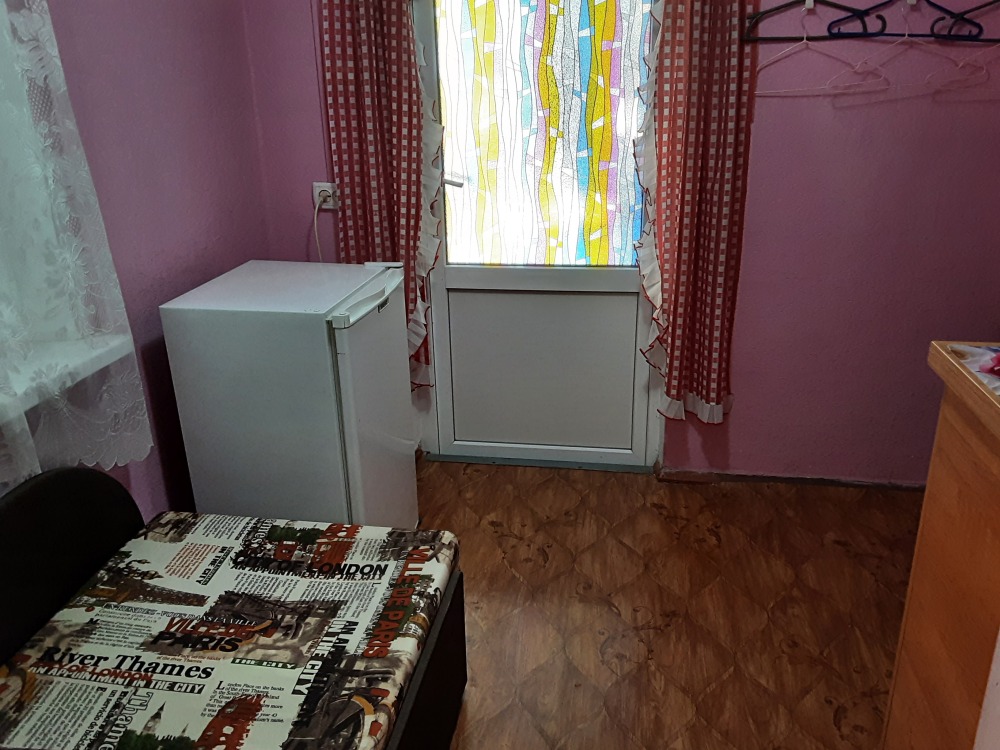 Небольшой двухместный номер с небольшой двухспальной кроватью с вентилятором,в номере телевизор,интернет,камод,трельяж,душ и туалет на два номера ,летняя площадка на два номера с личным обеденным столом ,с личной посудой,,горячая вода круглосуточно,рядом с номером общая кухня,со столами и посудой,холодильником,можно пользоваться стиральной машинкой,утюгом,мангалом и парковкой.