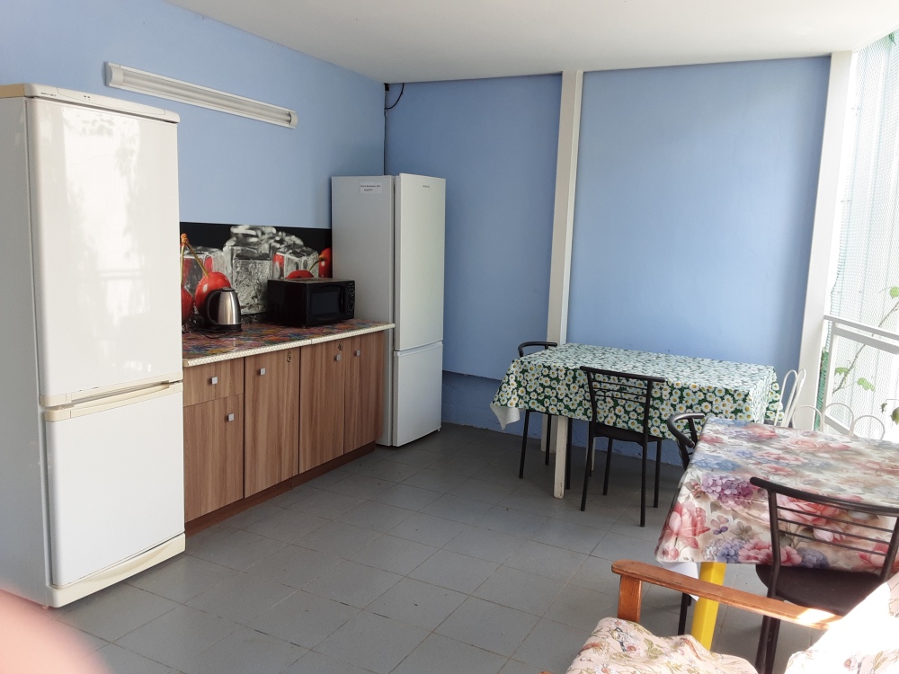 В номере еврокровать,шкаф,тумбочка,трельяж,телевизор,интернет,кондиционер,душ и туалет на два номера,горячая вода круглосуточно,рядом с номером,летняя площадка с личным обеденным и кухонным столом и личной посудой,холодильник,микроволновка,чайник электрический,можно пользоваться стиральной машинкой, общая кухня.