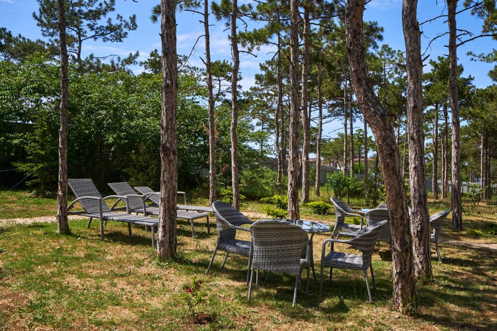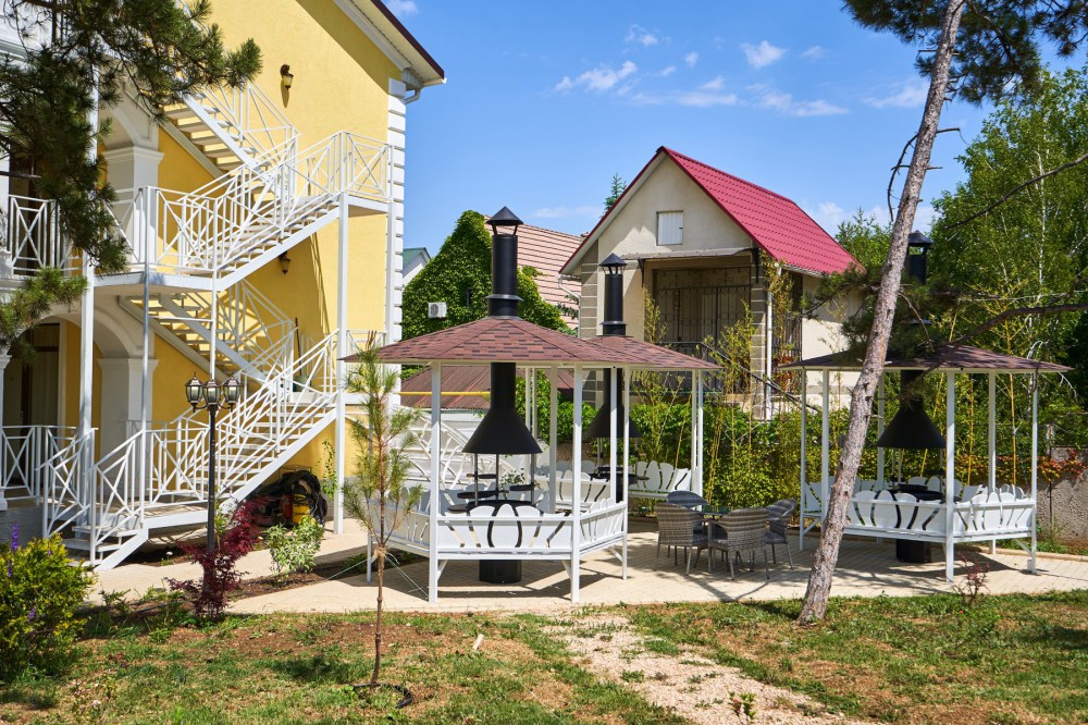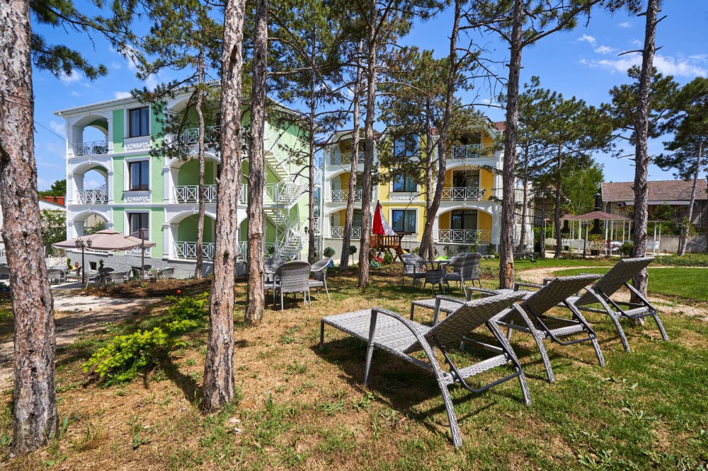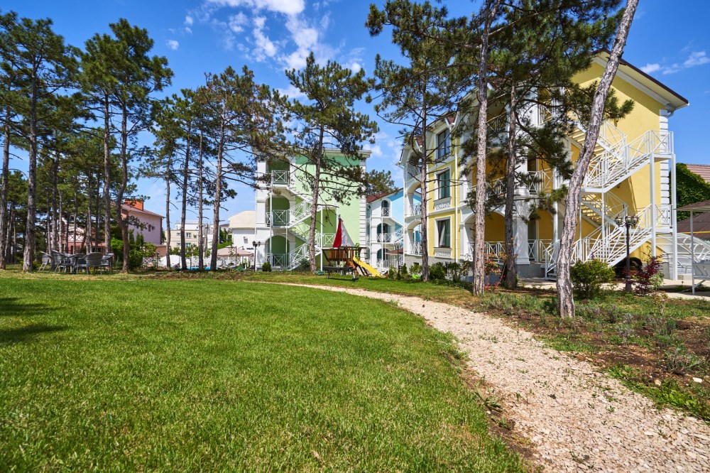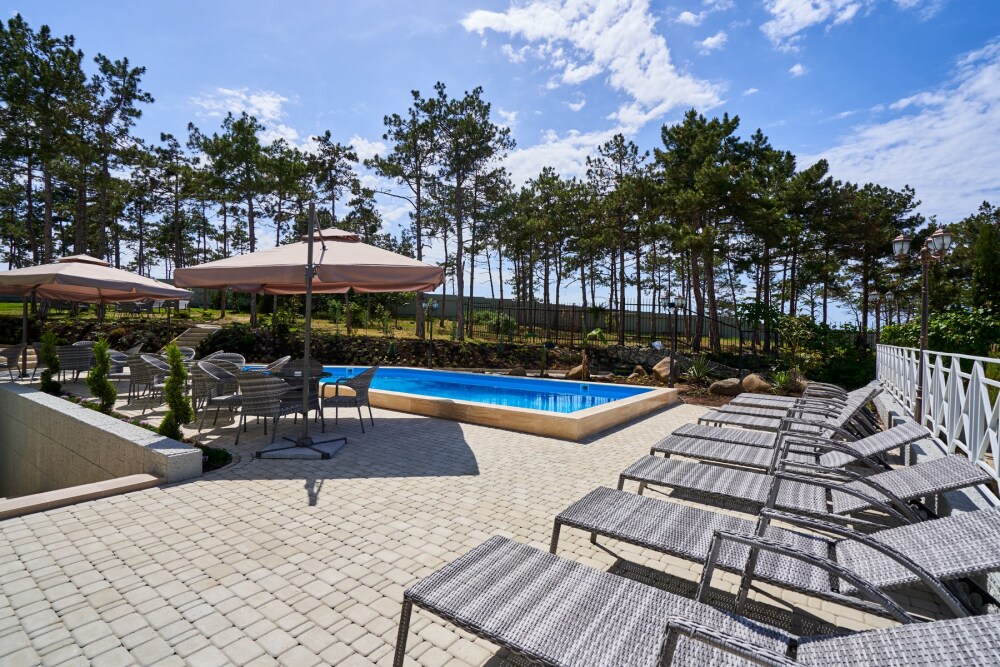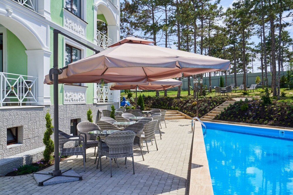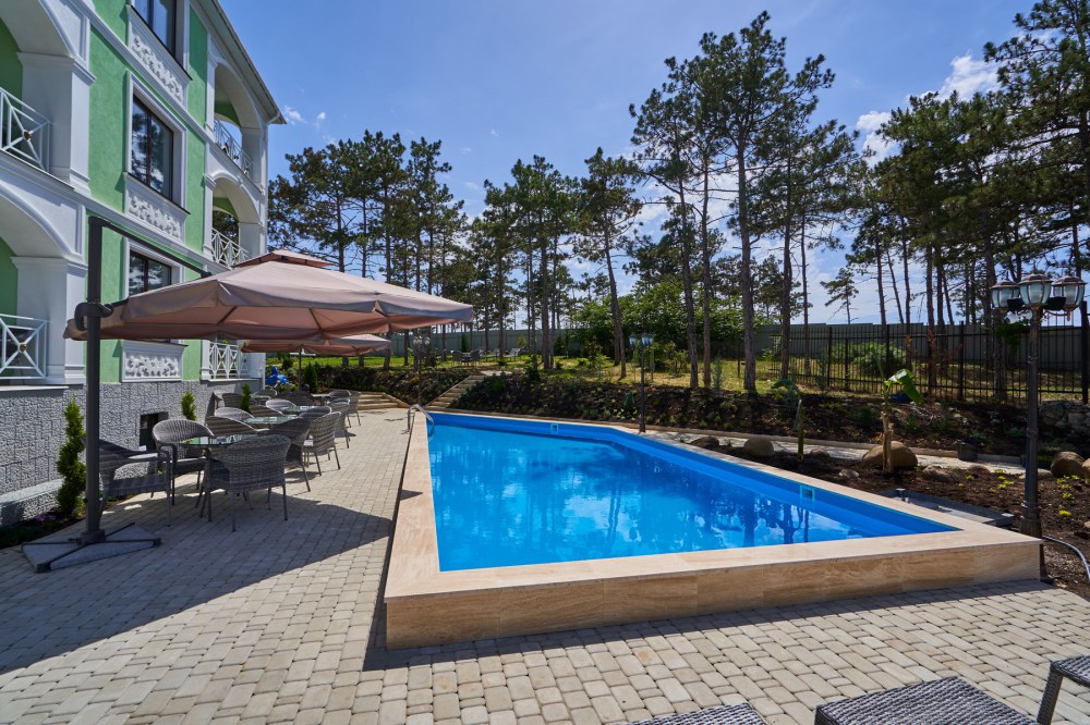 На территории расположен подогреваемый бассейн, беседка для отдыха, постояльцы могут воспользоваться мангальной зоной, в которой находятся 3 финских круглых мангала, прогуляться по территории, засаженной соснами, озеленением которой занимались профессиональные дендрологи из Никитского ботанического сада, детям будет интересно и весело на детской игровой площадке в виде корабля. Персонал отеля, для желающих разнообразить свой отдых постояльцев, за отдельную плату поможет организовать экскурсии с участием квалифицированного гида, конные прогулки, занятия дайвингом и многое другое.