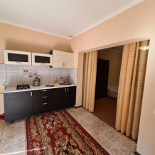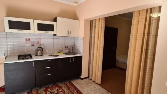 В номере: CD TV 32», спутниковое телевидение, индивидуальная кухня (холодильник, электроплита, электрочайник, посуда на 4 особы, кастрюли, сковородки и т.д.), кровати с ортопедическими матрасами, мягкий диванчик, кондиционер, санузел (душевая кабина, туалет, умывальник, биде). Горячая вода круглосуточно. Номер спроектирован как квартира-студио (1 комната кухня, 2я зал-спальня, между комнатами большой проем со шторами).