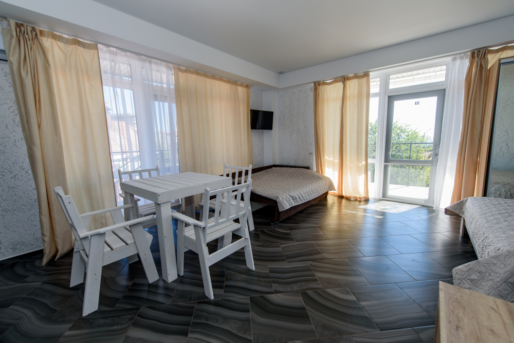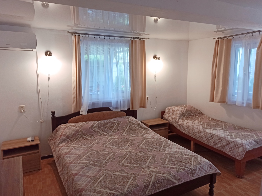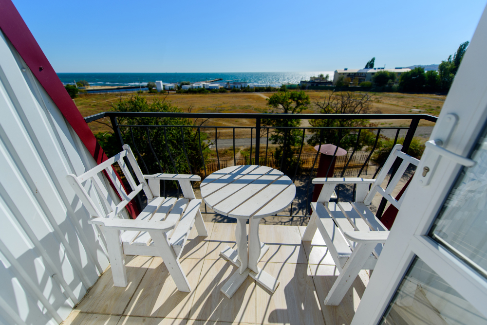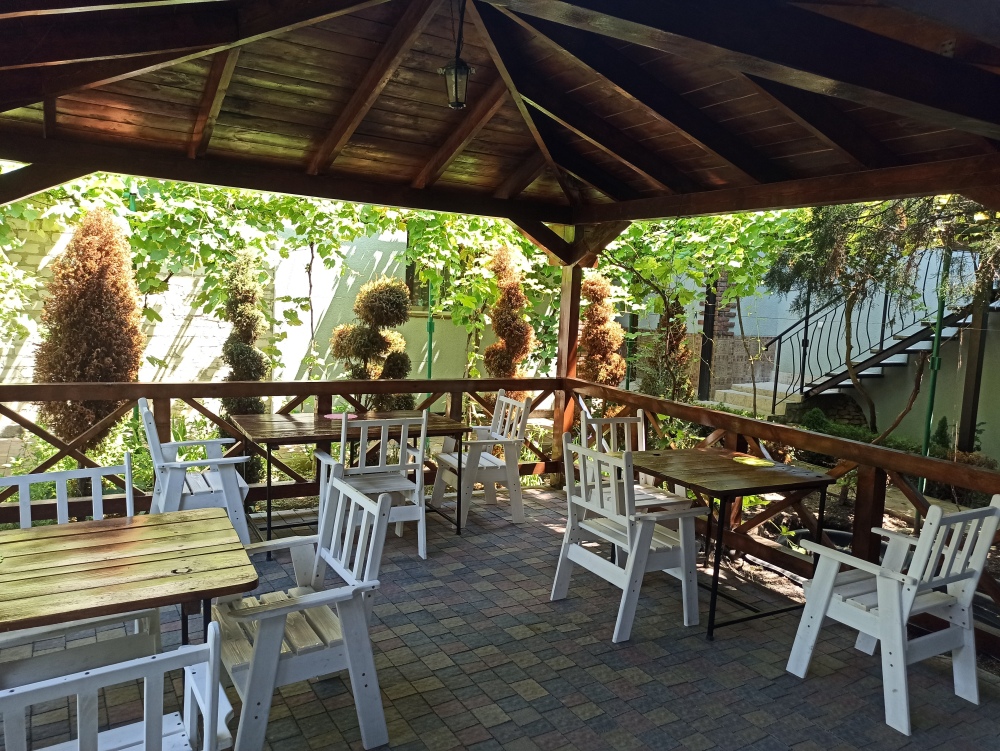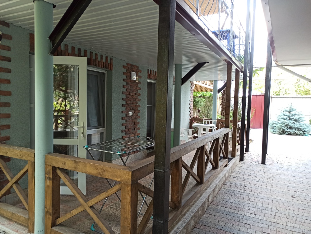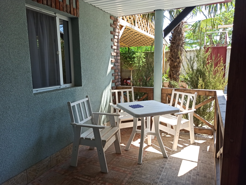 Гостевой дом на берегу моря, рядом с песчаным пляжем. Очень красивый Большой двор, каждого номера столик для отдыха на балконе.