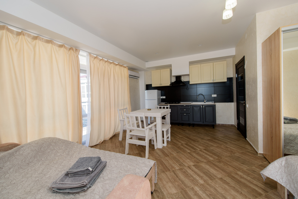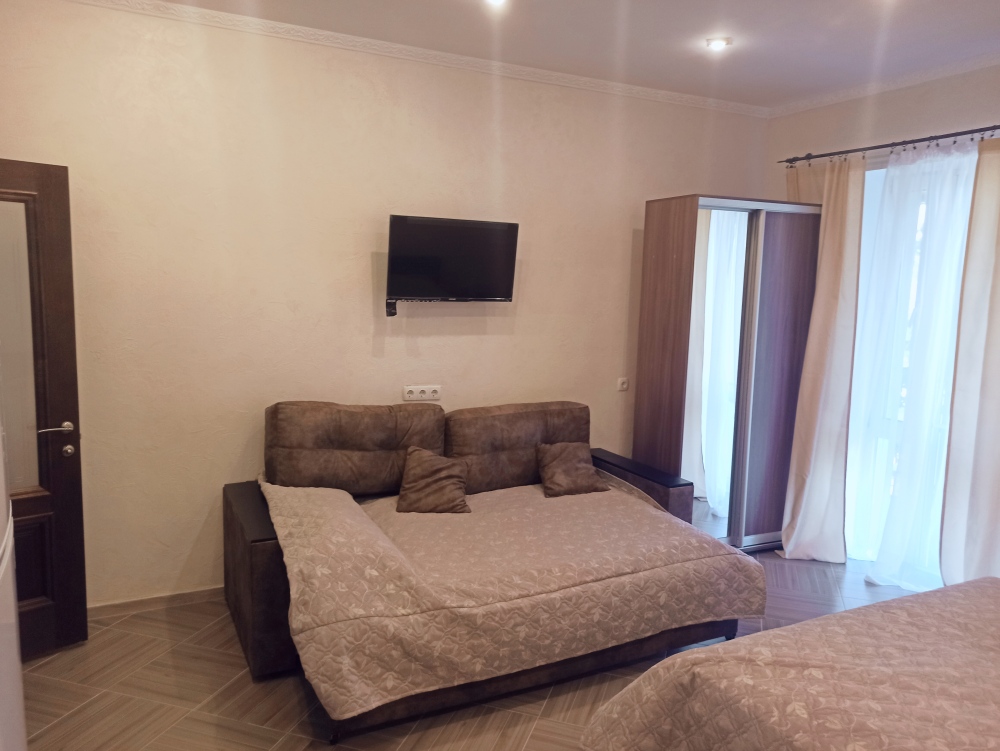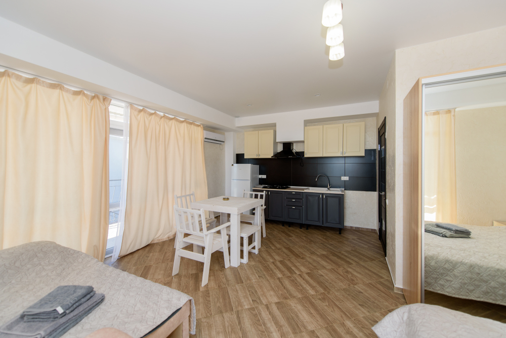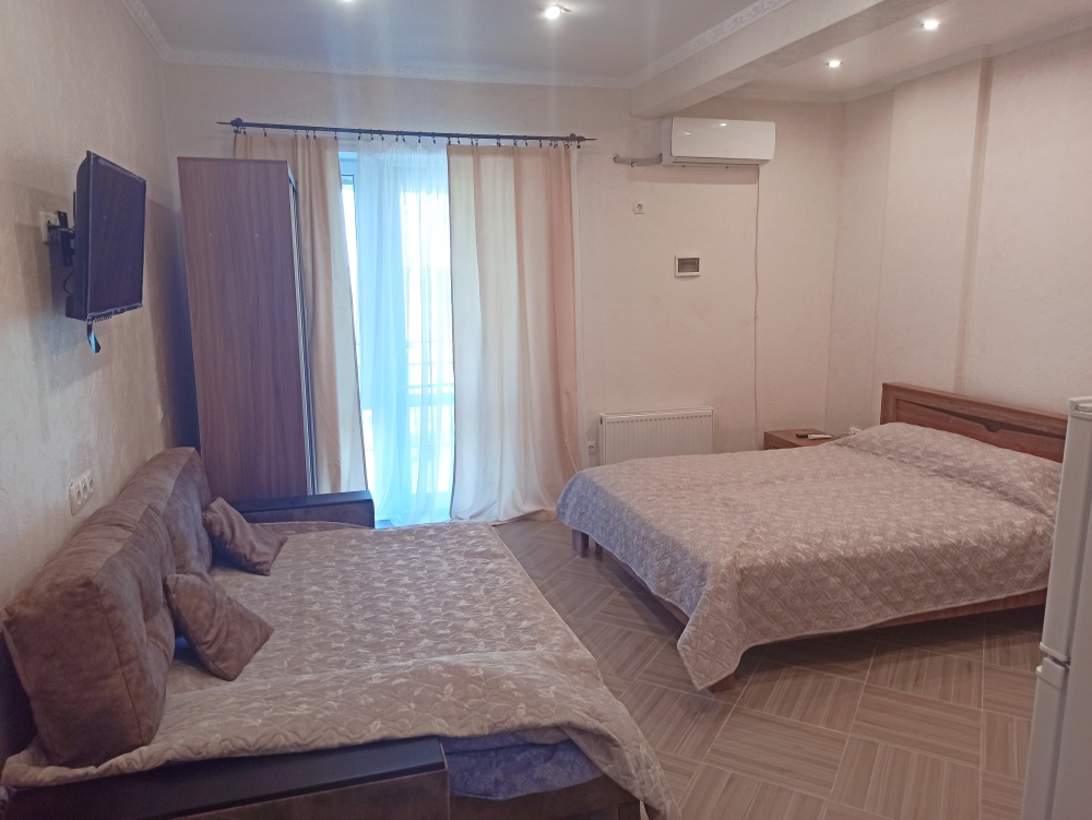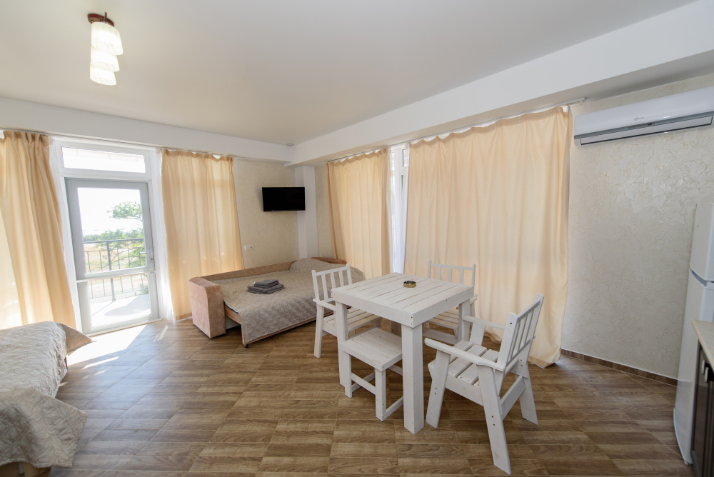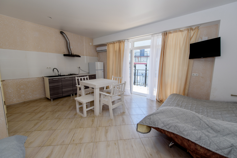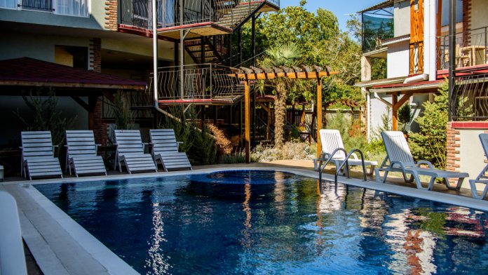 Гостевой дом на берегу моря, рядом с песчаным пляжем. Очень красивый Большой двор, каждого номера столик для отдыха на балконе.