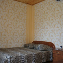 Номер гостевого дома оформлен в классическом стиле. В распоряжении гостей кондиционер, гостиная зона, телевизор, холодильник, Wi-Fi и собственная ванная комната с душем.