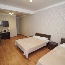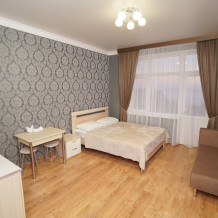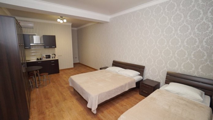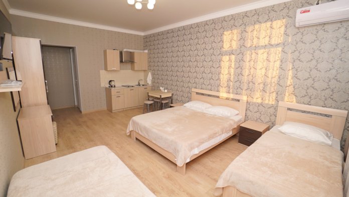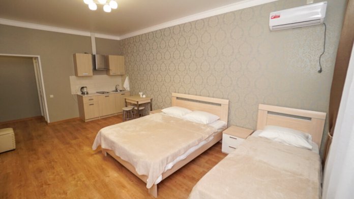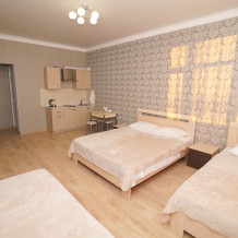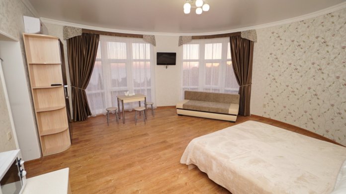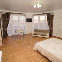 В номерах котегори «Люкс» — своя мини кухня кондиционер, плазменный телевизор, холодильник, шкаф, туалет и душ, WI-FI.