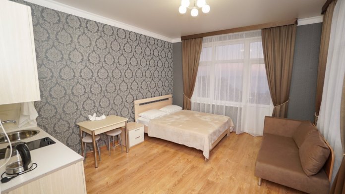 в номере своя мини кухня телевизор кондиционер сан.уз балкон с видом на море