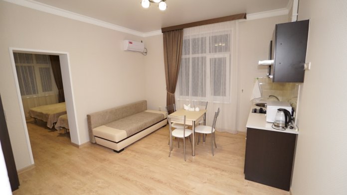 двухкомнатный номер с кухней. сан.уз. телевизор кондиционер балкон и вид на море