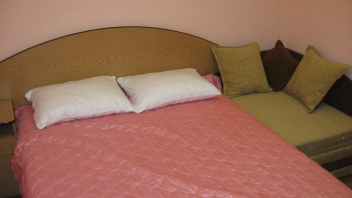 Одноэтажное, каменное строение, выполненное в итальянском стиле патио с уютным внутренним двориком, утопающем в зелени винограда и благоухании роз. К услугам отдыхающих 2-х, 3-х, 4-х и 5-местные номера с новой современной мебелью, кондиционером, холодильником, ж/к телевизором, санузел и горячая вода в номере.