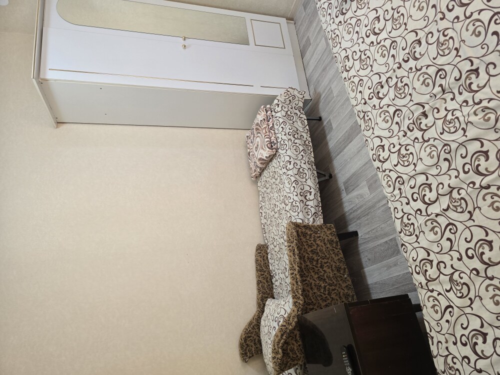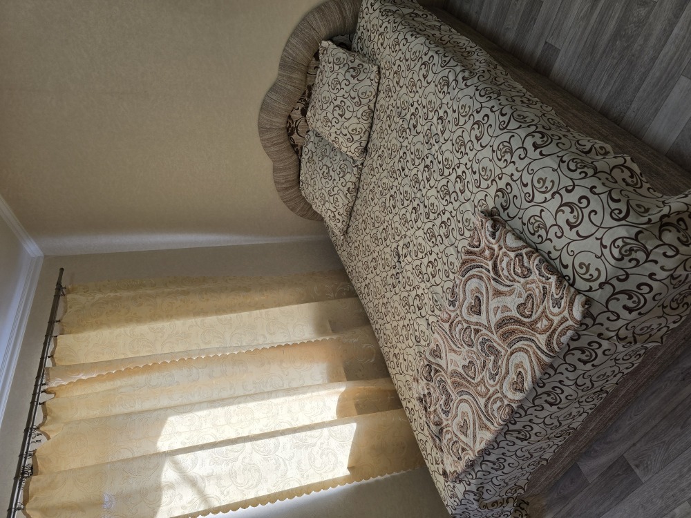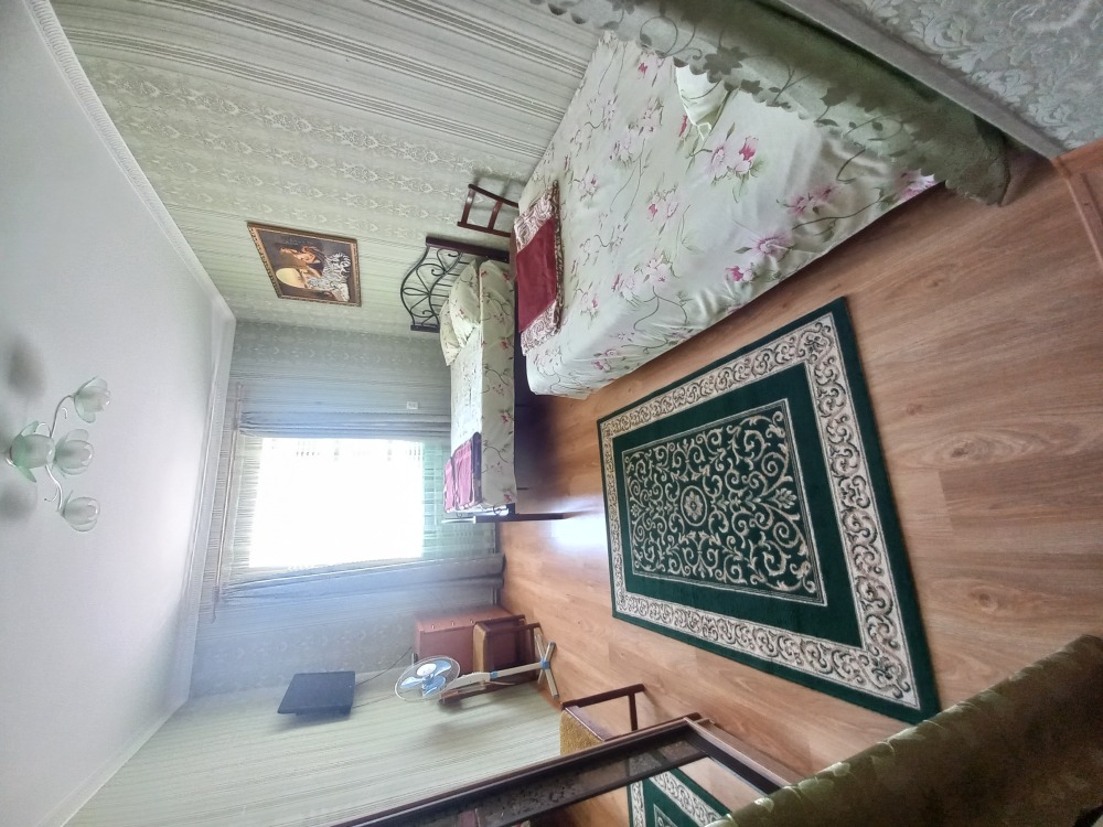 Комната на втором этаже. В комнате одна двухспальная кровать, один двухспальный диван, прикроватные тумбочки, шкаф, трюмо, комод, телевизор, вентилятор. Комната под ключ. Кухня и санузел на две комнаты.