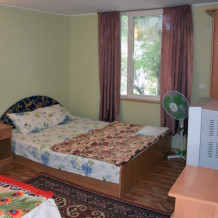 Эконом двухместный, одна двухспальная кровать, шкаф, столик, телевизор, вентилятор.