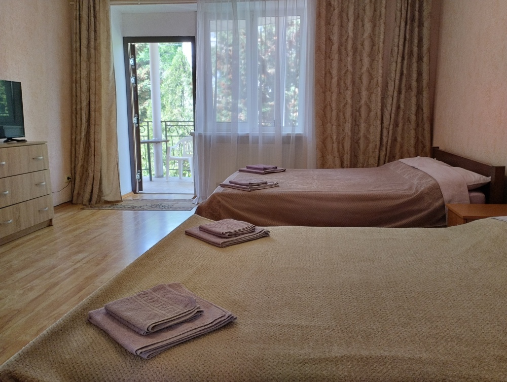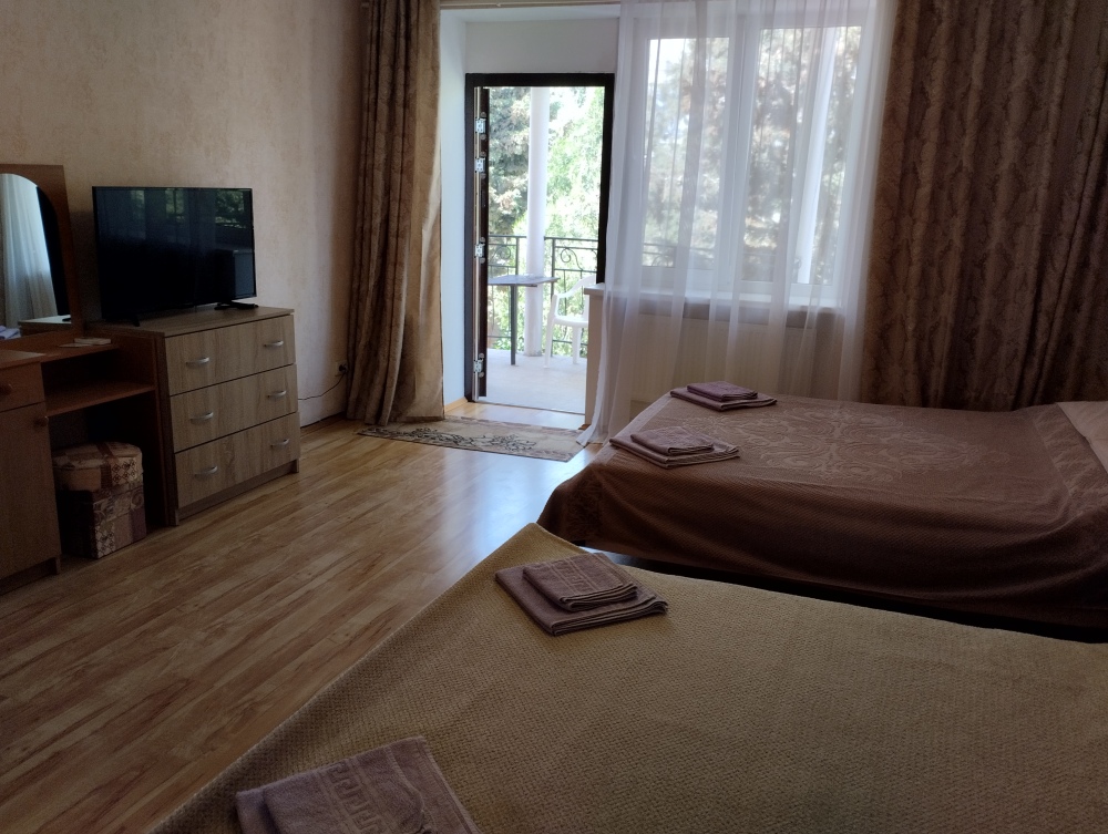 В номерах возможно 2-, 3- и 4-местное размещение. Есть также 2-комнатный номер.