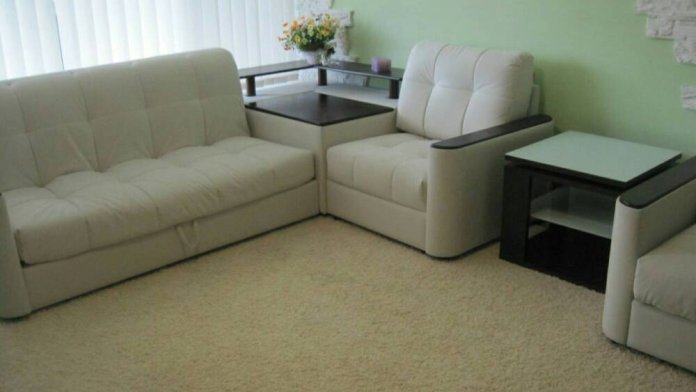 В номере: раскладной диван с прикроватными тумбочками. Шкаф-купе, журнальный столик.