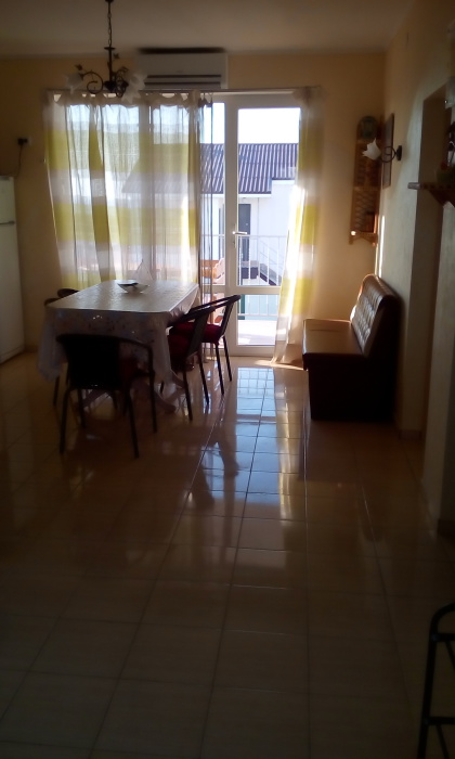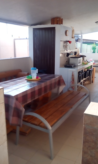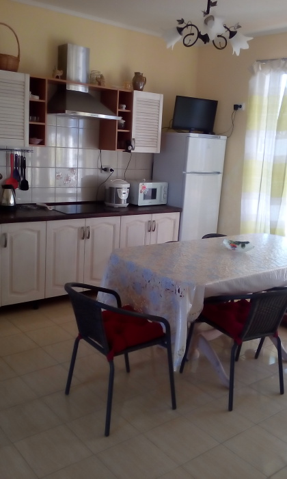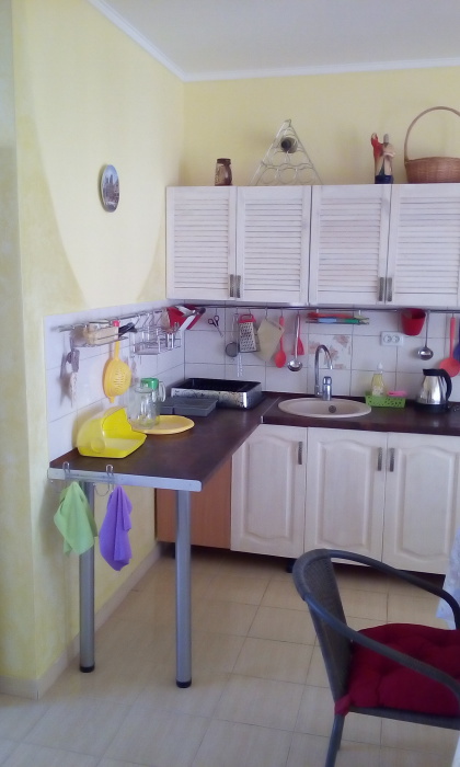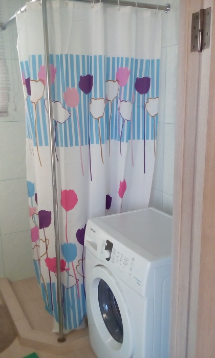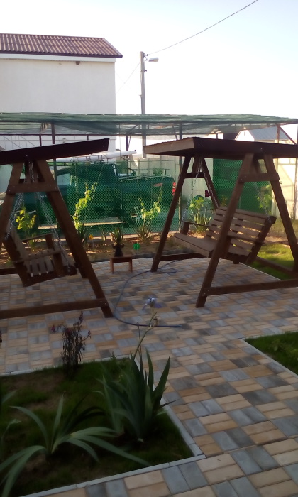 Дом новый, построен и отделан в 2016 году. Дом состоит из двух этажей, каждый этаж имеет отдельный вход. На каждом этаже имеются две спальни, всего на этаже 7 спальных мест, большая кухня-гостиная, туалет и душ, а также большая открытая веранда (на 2-м этаже балкон). На каждом этаже имеется вся необходимая бытовая техника: телевизор, холодильник, стиральная машина, электроварочная панель, микроволновка, мультиварка, фен. В каждой комнате есть кровать и диван.
