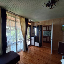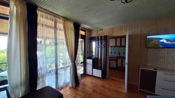 Деревянный коттедж с большой террасой и видом на море для семьи из 2-3 чел.