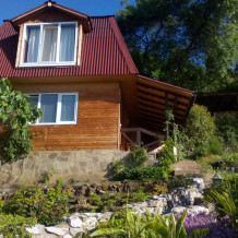 Сдаётся деревянный дом на 2-4 человек. Дом двухэтажный, двухкомнатный. На первом этаже: комната для 2 чел., кухня-студия (газовая плита, холодильник, электрочайник, набор необходимой посуды), санузел. На втором этаже расположена большая комната для 2 чел. Обе комнаты с видом на море. Подключен Wi-Fi, работают кондиционеры. К дому пристроена веранда. Кроме того, во дворе построена общая беседка с панорамным видом, установлены садовые качели. Можно пользоваться мангалом. За воротами двора есть место парковки.