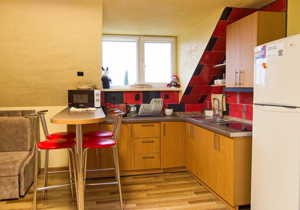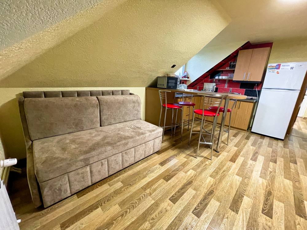 2 балкона. Студия, совмещенная с кухней и спальня. Плита стеклокерамика. Вся необходимая посуда.