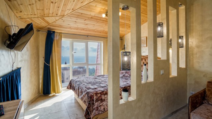 Отдыхали здесь с мужем в январе. Одно из лучших месторасположений в Крыму - для тех, кто ищет тишины и возможности хорошо выспаться )) (часто это бывает проблемой в съемных квартирах - ибо они располагаются в шумных местах) здесь и в меру удаленное расстояние от основной трассы и близко до всех главных мест Симеиза. фото вполне себе соответствует реальности- что приятно удивило ) просыпаться с видом на море- супер! есть кухня с плитой, набором необходимой посуды в тч сковородкой и кастюлей ( это супер, ведь мы готовили завтраки и ужины часто дома) душевая комната тоже супер! бойлер супер большой, ни разу не заканчивалась горячая вода. хорошая подсветка у зеркала) + большая стиральная машинка в общем, все супер! вернемся сюда еще.