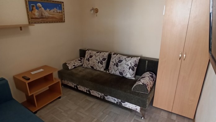В комнате двуспальный диван, односпальный диван, столик, шкаф, плазменный телевизор (кабельное ТВ), кондиционер, Wi-Fi.