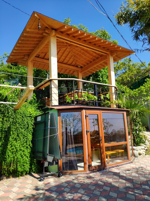 В распоряжении постояльцев гостевого дома открытый бассейн, сауна, зона барбекю, беседка, крытая терраса, просторный двор, детская игровая площадка, лаундж-зона, настольный теннис и потрясающий вид из каждого номера и бесплатный Wi-Fi интернет. На территории гостевого дома и в окрестном районе созданы отличные условия для активного отдыха. Есть все необходимое: рестораны, кафе (на берегу), продуктовые магазины и овощной рынок, бесплатная парковка в 1 минуте ходьбы от гостевого дома.
