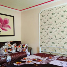 К услугам гостей в комнате: 2-спальная кровать, 2-спальный диван, платяной шкаф. Свой душ, туалет, кондиционер, телевизор (спутниковое ТВ), интернет, утюг, постельное белье. Горячая и холодная вода. Кухни нет. Вход отдельный, свой дворик. Во дворе: навес, газовая плита, стол для приема пищи, мангал.