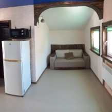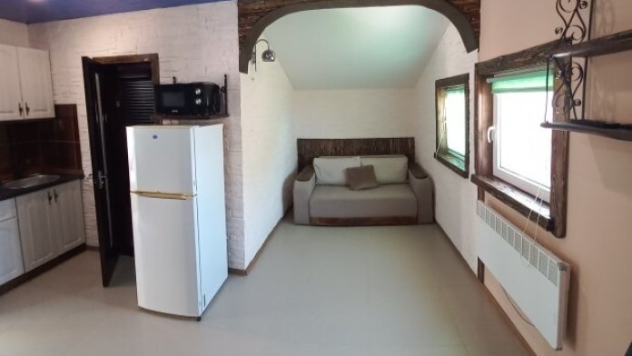 Одноэтажное строение, отличный ремонт, в вашем распоряжении комната с кухней студией, отдельный санузел. Есть все необходимое для отдыха: кондиционер, телевидение, посуда, белье, беседка с мангалом для отдыха, бассейн. Много зелени.