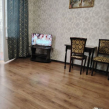 В квартире просторная светлая комната с необходимой мебелью для отдыха; кухня с холодильником, плитой, посудой; большая лоджия с диваном-полноценное спальное место;укомплектованный санузел.