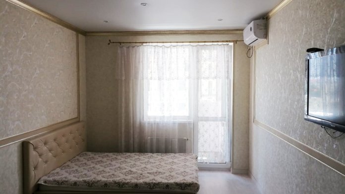Квартира-студия оснащена всем необходимым: Wi-Fi, телевизор, кондиционер, кухня и ванная комната.