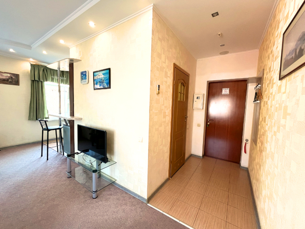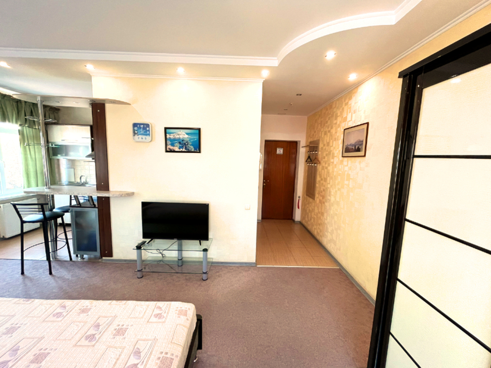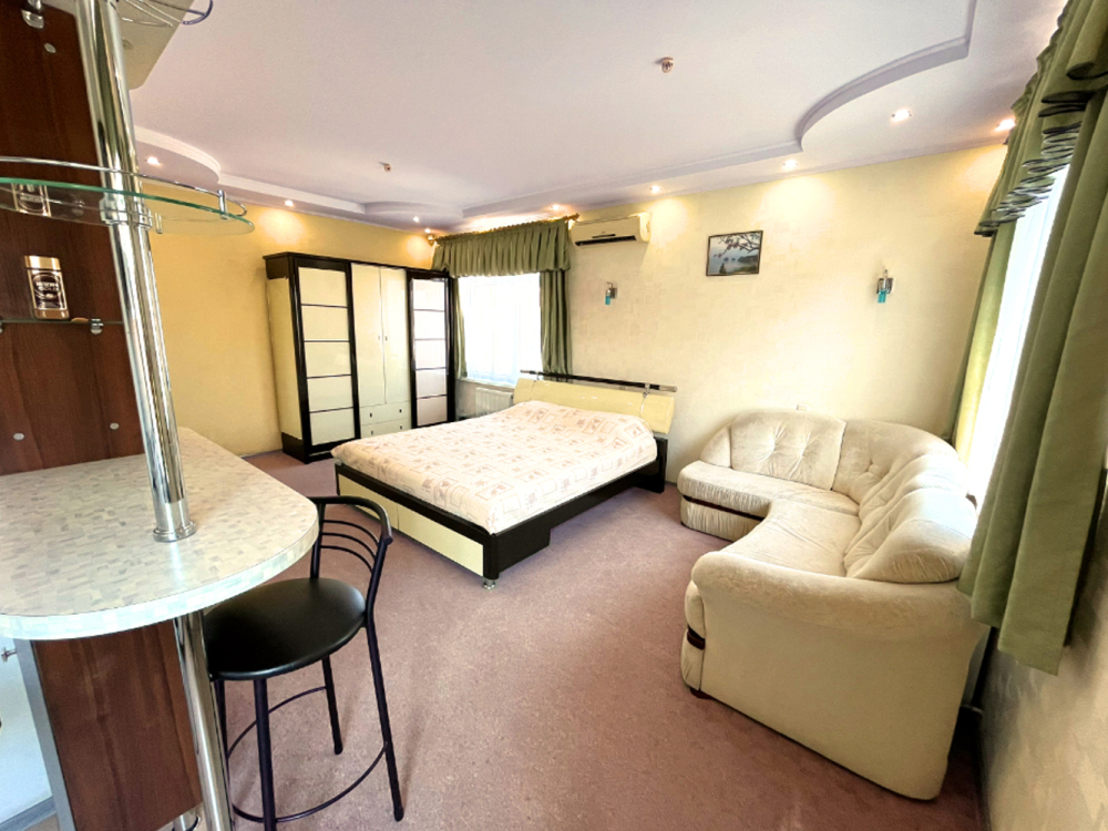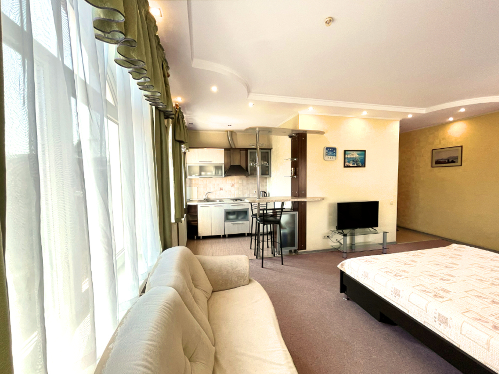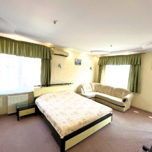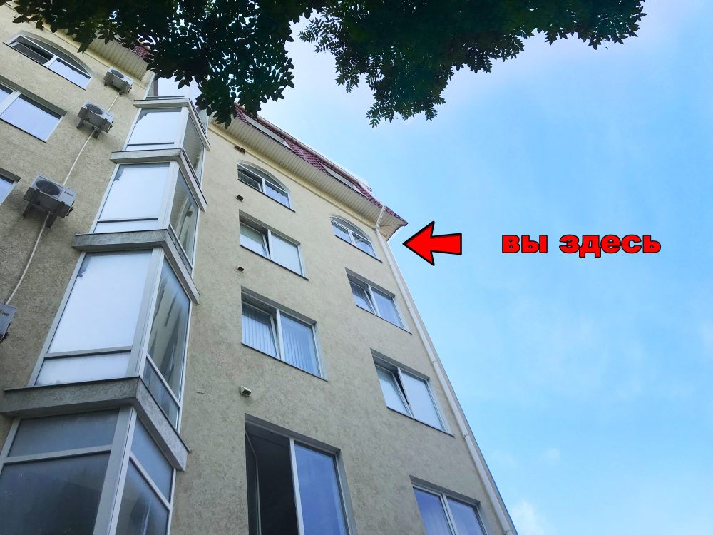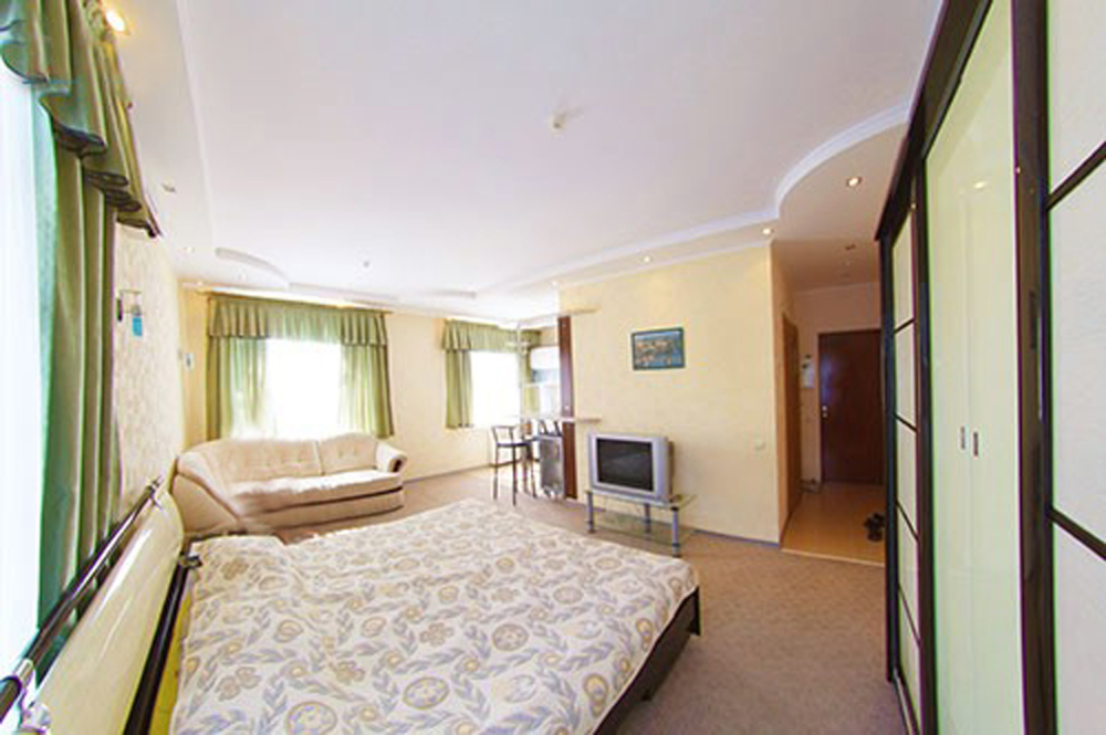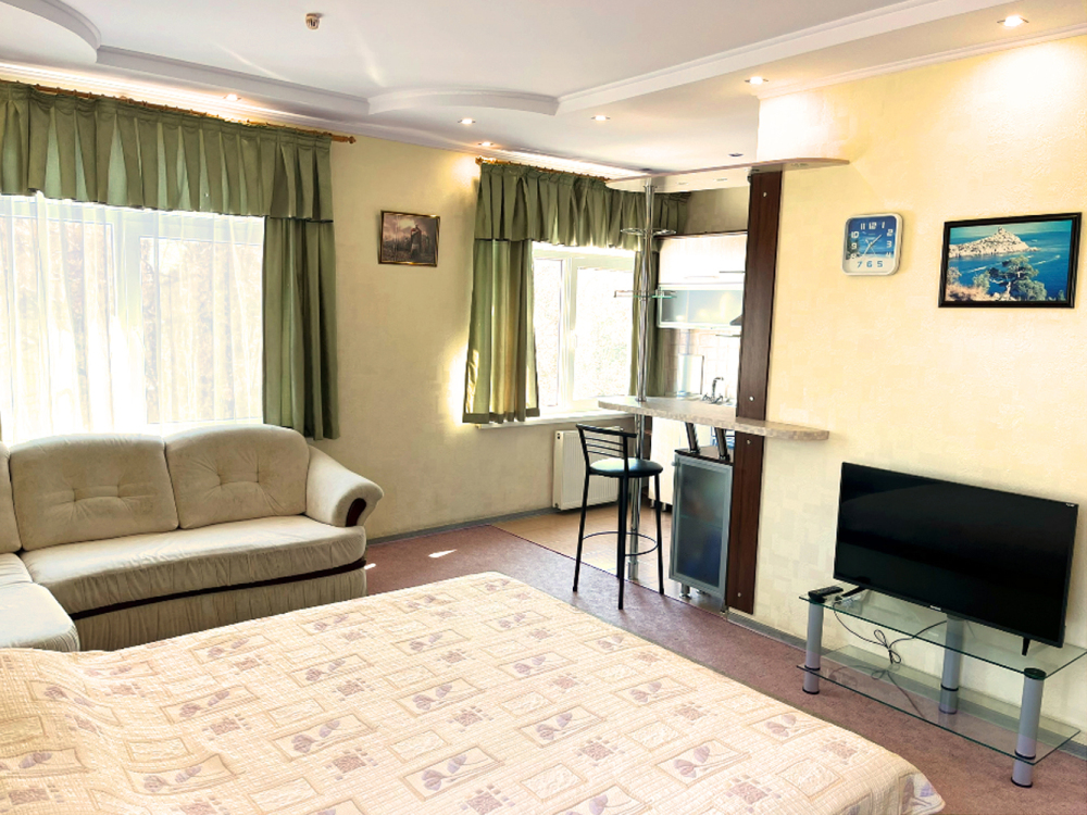 Апартаменты люкс 503 (квартира-студия) на 5-м этаже гостиничного комплекса, с видом из трёх окон на море и горы. В квартире есть всё необходимое для комфортного отдыха: кондиционер, wi-fi, большая двуспальная кровать, раскладной двуспальный диван, шкаф-гардероб, кухня со всей необходимой посудой, электроплита, холодильник, мультиварка, микроволновка, стиральная машина, барная стойка, сейф, фен, утюг, гладильная доска, сушилка, одеяла, подушки, полный комплект постельного белья и полотенец по количеству проживающих.