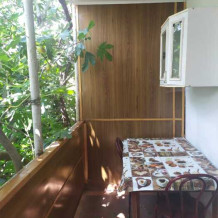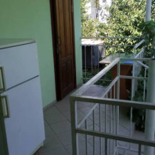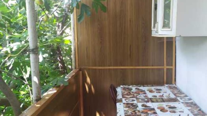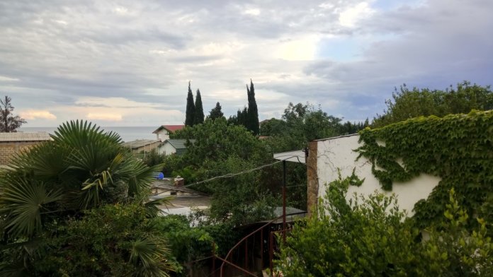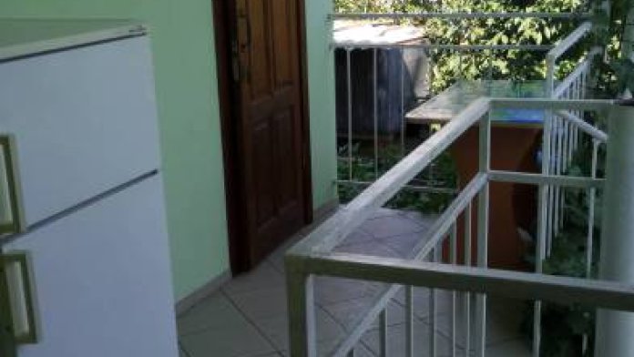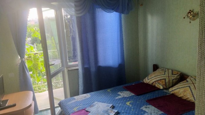 Двухместный номер на 2 этаже, выход на большую веранду, на веранде стол, стулья, диван, холодильник, телевизор, санузел. Вид на море и горы.