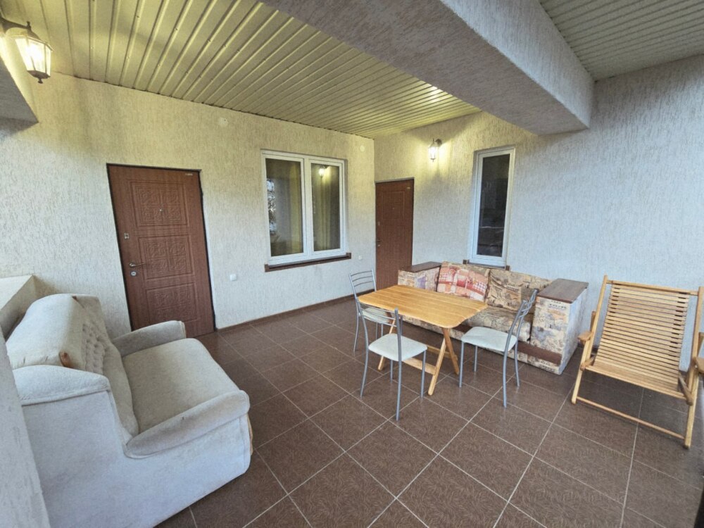 Номер «Южный» с балконом и общей террасой ( на два номера). В номере есть мебель, телевизор, кондиционер, свой душ и санузел.