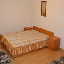 Просторный номер в коттедже на первом этаже( 20 м2.) с прихожей. В номере:спальный гарнитур с двухспальной кроватью,полуторный диван,плазменный телевизор(кабельное),кондиционер;санузел (туалет, умывальник, душевая кабинка, набор полотенец, бойлер).Холодная и горячая вода круглосуточно.Кухня на 2 номера,беседка.Основных мест 3+1 доп