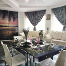 Окна и балкон-терраса (авторское решение архитектора - 20 метров длиной) выходят на море, парк санатория и Медведь-гору (АЮ-ДАГ). Есть лифт, видеонаблюдение по периметру дома. Бесплатная автостоянка.