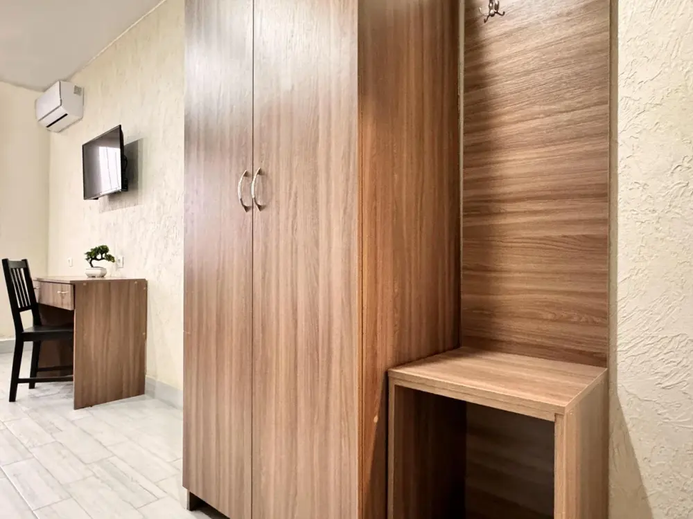 Для вашего комфортного и незабываемого отдыха мы рады предложить прекрасный однокомнатный номер с видом на море. В нем есть все необходимое для вашего отдыха: двуспальная кровать, прикроватные тумбочки, стол, телевизор, мини-холодильник. Также в номере имеется Wi-Fi, для того чтобы вы всегда оставались на связи. Утром вы можете насладиться чашечкой чая или наблюдать за восходом солнца, а вечером отдохнуть на балконе, наслаждаясь морским бризом и потрясающим закатом. Этот номер станет идеальным выбором для романтического уикенда или незабываемого отпуска.