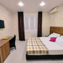 В номере есть все необходимое для комфортного проживания и отдыха: двуспальная кровать, прикроватные тумбочки, стол, стулья, шкаф для одежды, мини-холодильник, телевизор, кондиционер, а так же wi-fi. Номер без балкона.