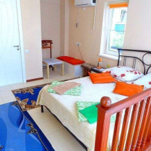 Для проживания отдыхающим здесь предлагают уютные номера «Эконом» и «Стандарт», рассчитанные на заселение от 2 до 5 человек. Из всех номеров есть выход на общую террасу, а в комнатах установлена удобная мебель, доступен беспроводной интернет. По согласованию допускается размещение с животными.