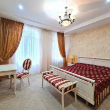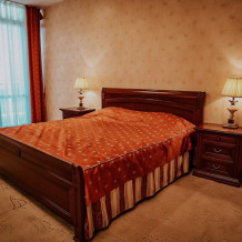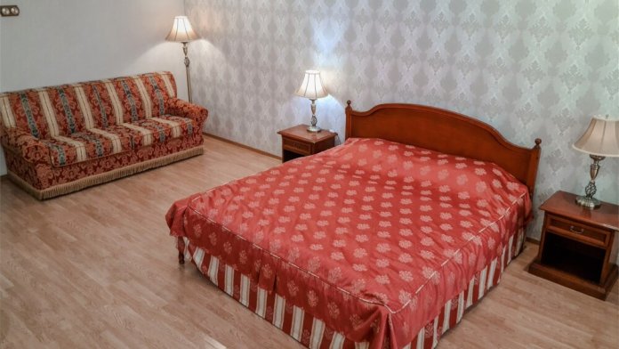 Просторный двухкомнатный номер с двуспальной кроватью, двухместным раскладным диваном и балконом.