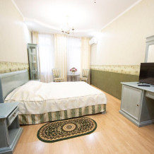 Уютный однокомнатный номер с одной двуспальной или двумя односпальными кроватями, раскладным креслом или раскладной кроватью.