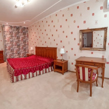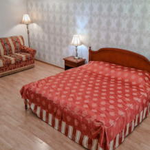 Комфортный однокомнатный номер с одной двуспальной или двумя односпальными кроватями, двухместным раскладным диваном и балконом.