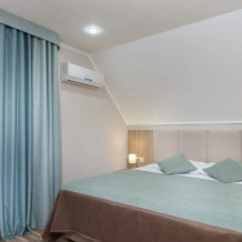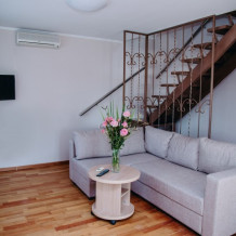 Двухкомнатный номер состоящий из гостиной, спальни, мини кухни с обеденной зоной. Оборудован современной комфортабельной мебелью, расположен на 3-м этаже коттеджа, с индивидуальным входом и балконом.