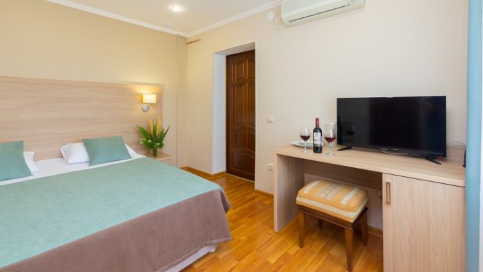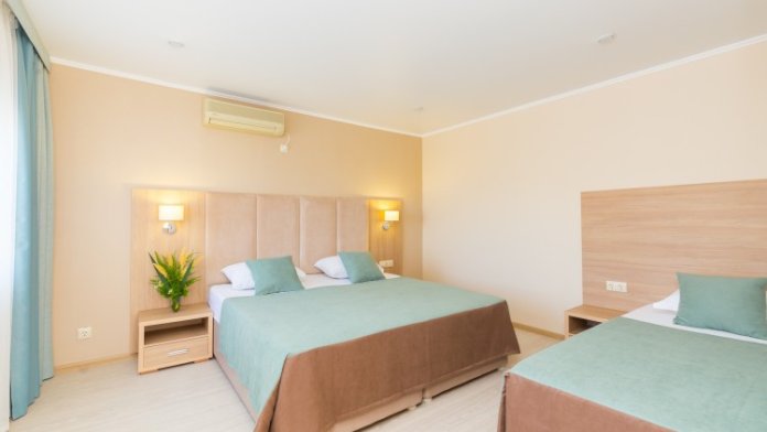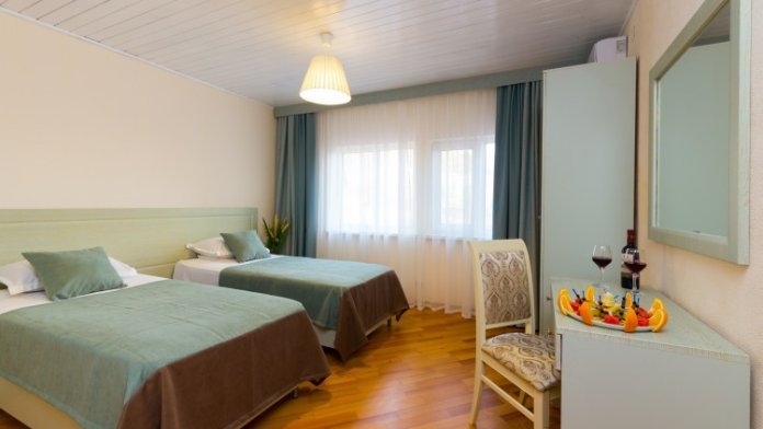 В номере 2-спальная кровать и диван или два кресло-кровати.