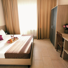 Небольшой номер для двоих с собственным душем и балконом. В номере есть всё необходимое для комфортного пребывания гостей в отеле: номер оборудован двумя раздельными или общей двуспальной кроватью, прикроватными тумбочками, также имеется стол, стулья, шкаф, телевизор, холодильник, кондиционер.