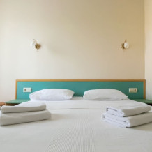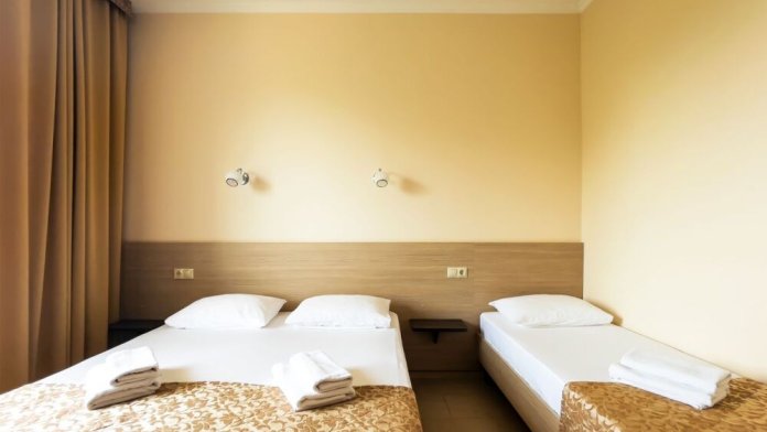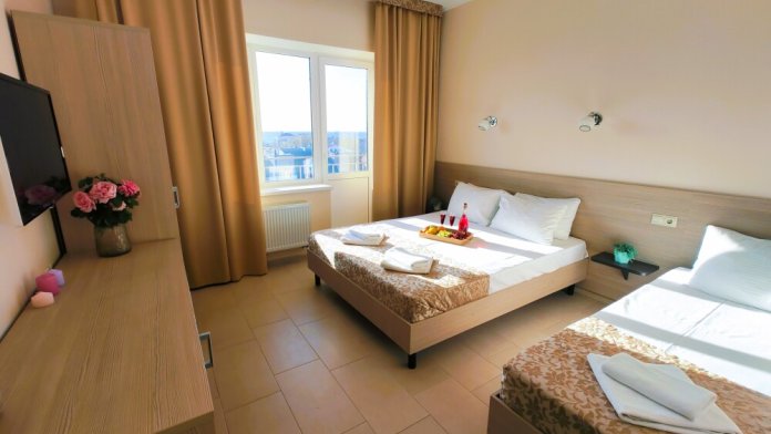 Уютный 3х местный номер с балконом, с которого открывается потрясающий вид на море. Номер оснащен всем необходимым для комфортного проживания: двуспальная кровать и односпальная кровать, прикроватные тумбочки, стол, стулья, шкаф, прихожая, зеркало, телевизор, холодильник, кондиционер. На балконе вы сможете наслаждаться свежим морским воздухом и любоваться закатами.