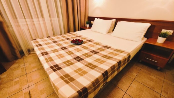 Однокомнатный номер для размещения четырех человек. В номере расположена двуспальная кровать, раскладной диван, а также прикроватные тумбочки, стол и стулья, шкаф для хранения вещей и одежды, телевизор, холодильник, кондиционер.