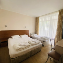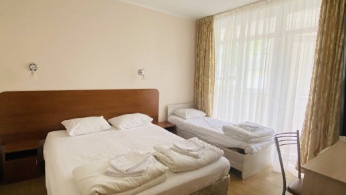 В номерах есть все необходимое для приятного отдых (кровати, шкаф, холодильник, сплит-система, телевизор, санузел с туалетом и душем).