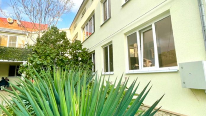 Современный корпус 2-этажного гостевого дома окружен цветами и утопает в зелени южных деревьев и виноградников.