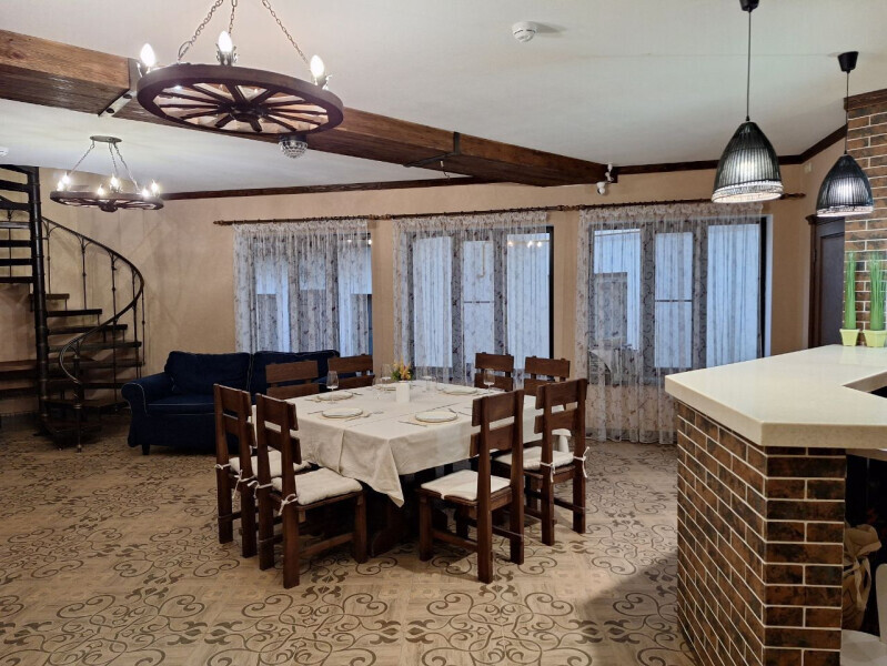 Просторная гостиная-столовая с комфортной зоной отдыха, камином и обеденным столом. Полностью оборудованная кухня со всей необходимой техникой и посудой позволяет с легкостью готовить любимые блюда и завтракать в своем ритме.