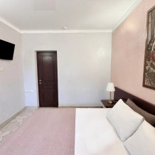 Номер оснащен: двуспальной кроватью или 2-мя односпальными кроватями, прикроватными тумбочками, бра, телевизором, кондиционером, шкафом для хранения вещей, вешалкой для одежды, зеркалом, чайником, мини-холодильником, феном. Балкон оборудован летней мебелью для отдыха на свежем воздухе, столом и стульями.