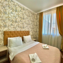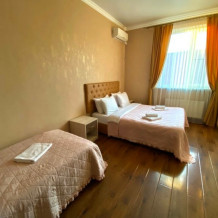 В номере: 1 двуспальная кровать и одна односпальная кровать.