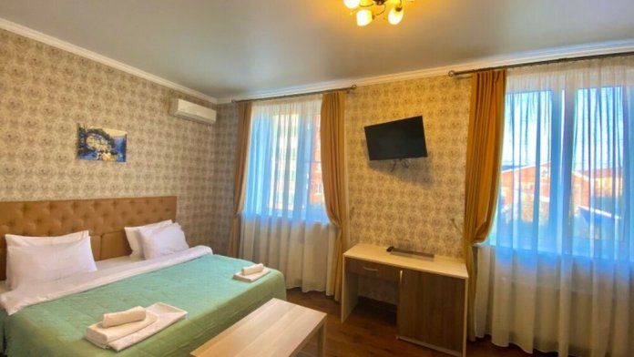 Гостей ждут современные комфортабельные номера с видом на улицу и город, которые оснащены кондиционером, телевизором. Есть отопление, холодильник, чайник, стол рабочий и туалетный, посуда, столовые приборы, Wi-Fi.